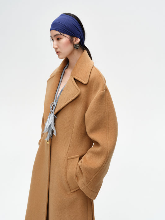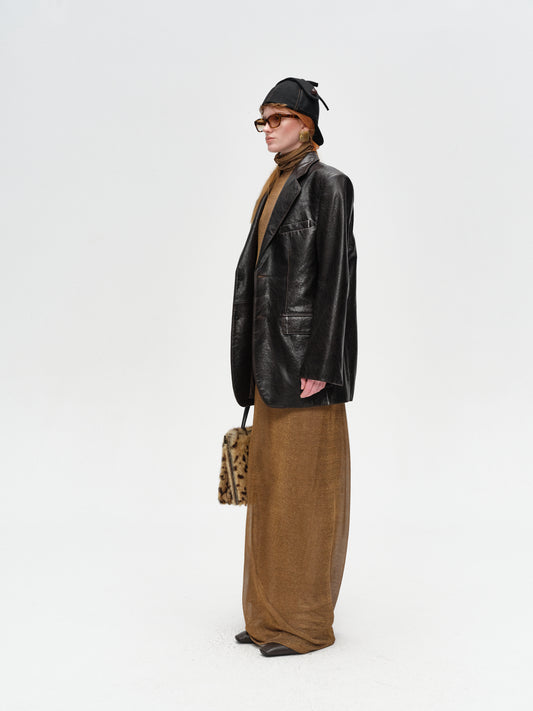 Dark Brown Retro One-Button Lamb Leather One-Piece Coat