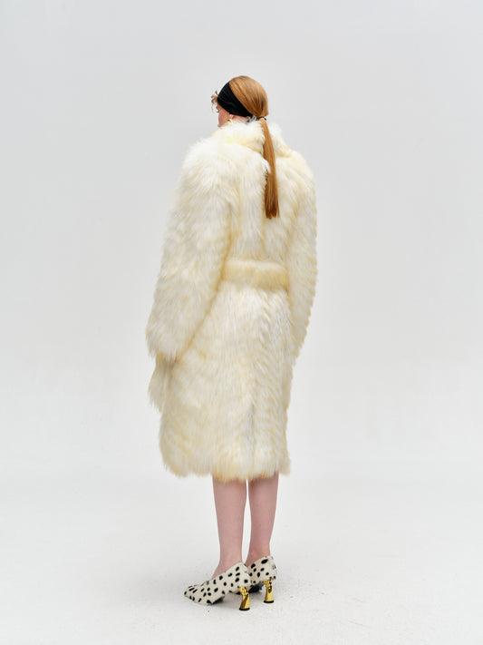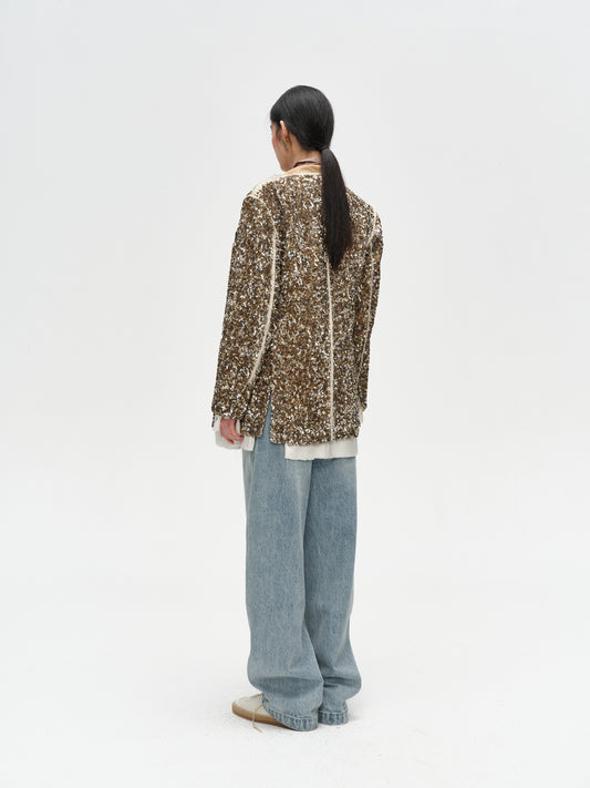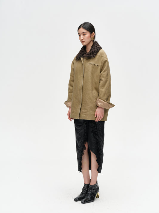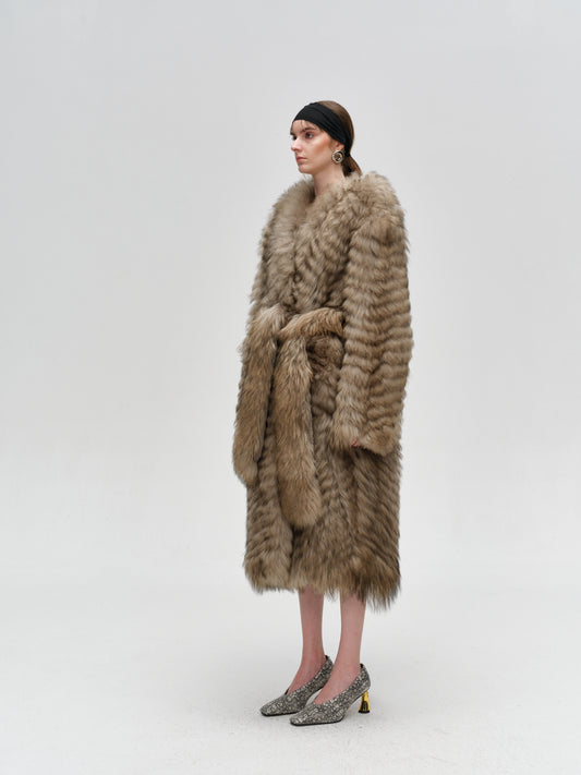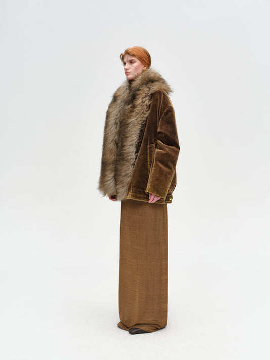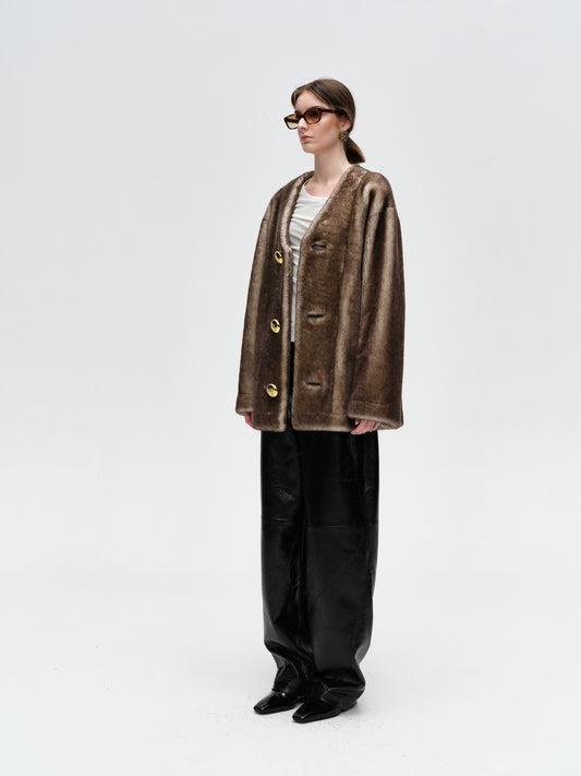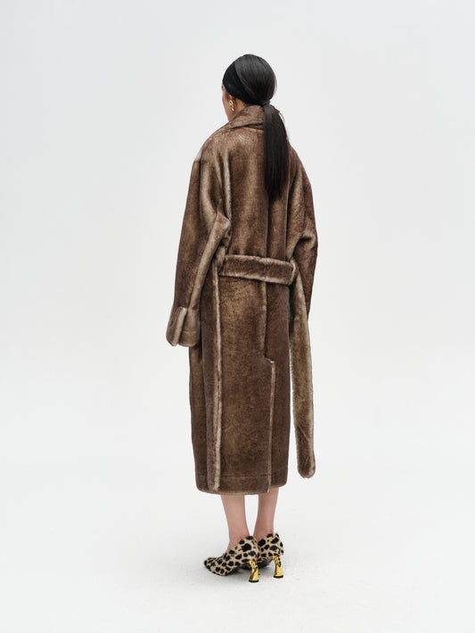 Brown Fish Scale Pattern Long Lamb Leather Grass Coat