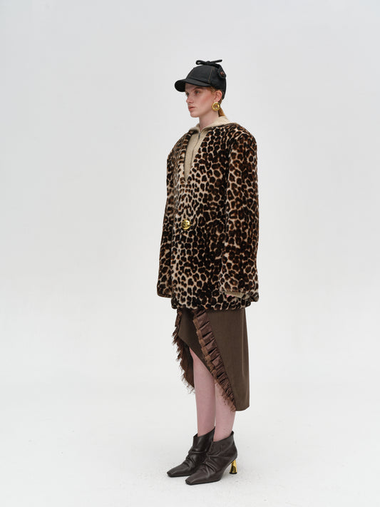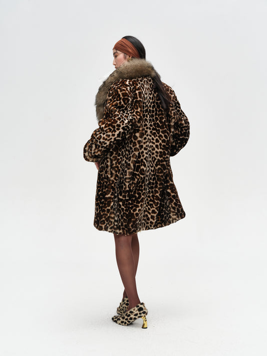 Retro Leopard Print Lamb Leather Collar One-Piece Coat