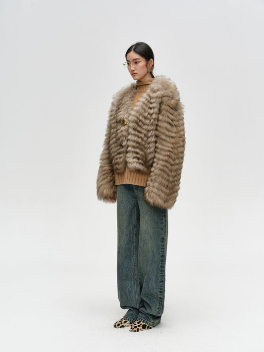 Brown Fish Scale Pattern Short Lamb Leather Grass