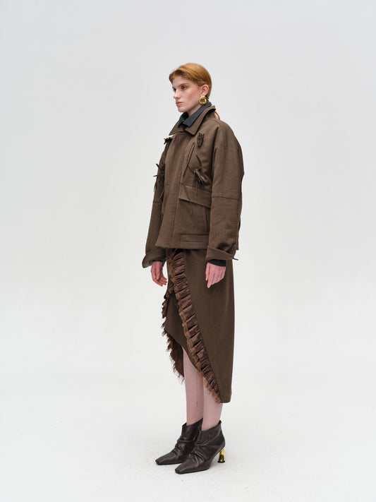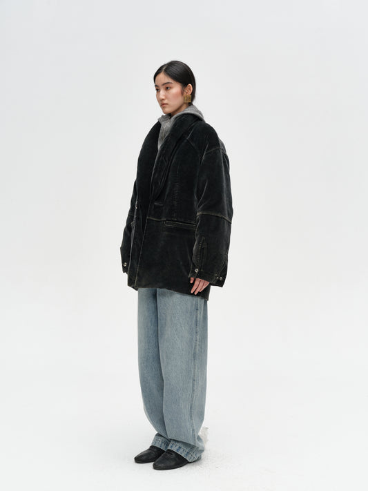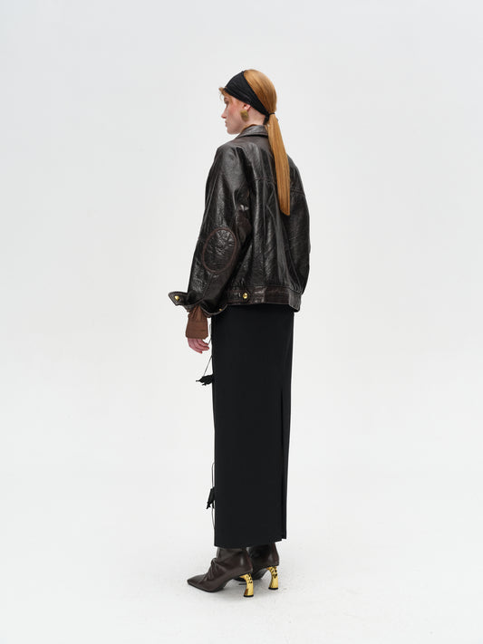 Dark Brown Vintage Texture Lamb Leather Western Coat