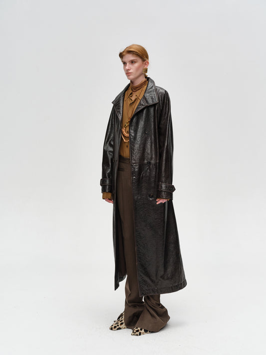 Dark Brown Vintage Texture Lamb Leather Jacket
