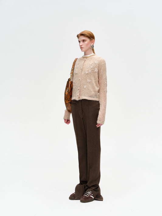 Skin-tone Hand-embroidered Shimmering Epiphyllum Wool Knit Sweater