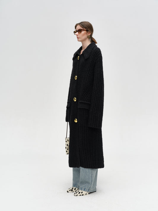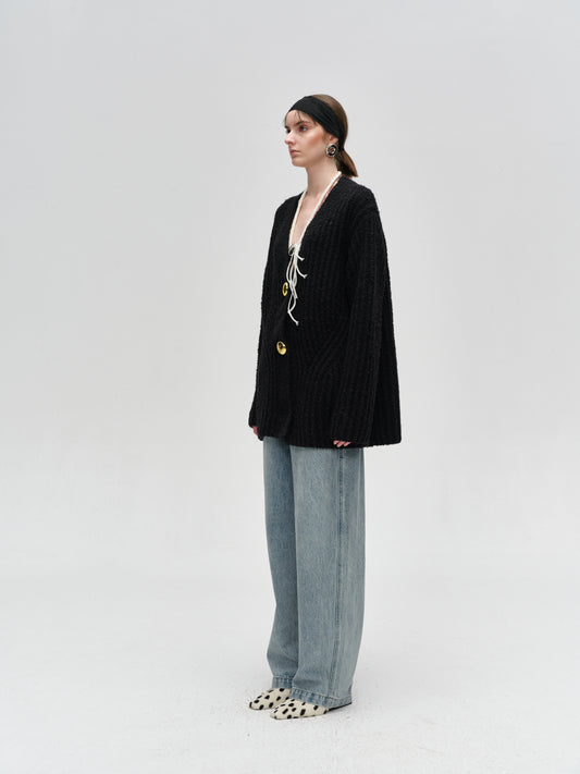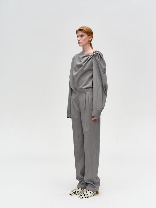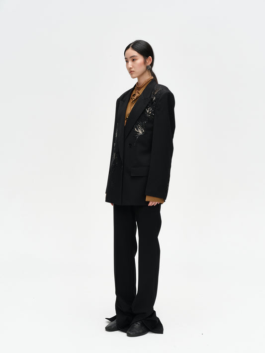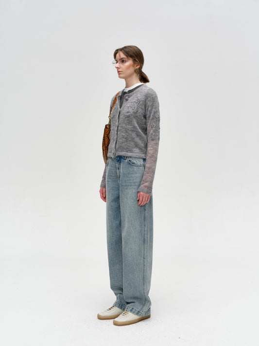 Gray Hand-embroidered Beaded Epiphyllum Wool Knit Sweater