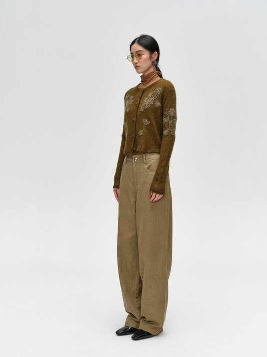 Olive Green Hand-embroidered Shimmering Epiphyllum Wool Knit Sweater