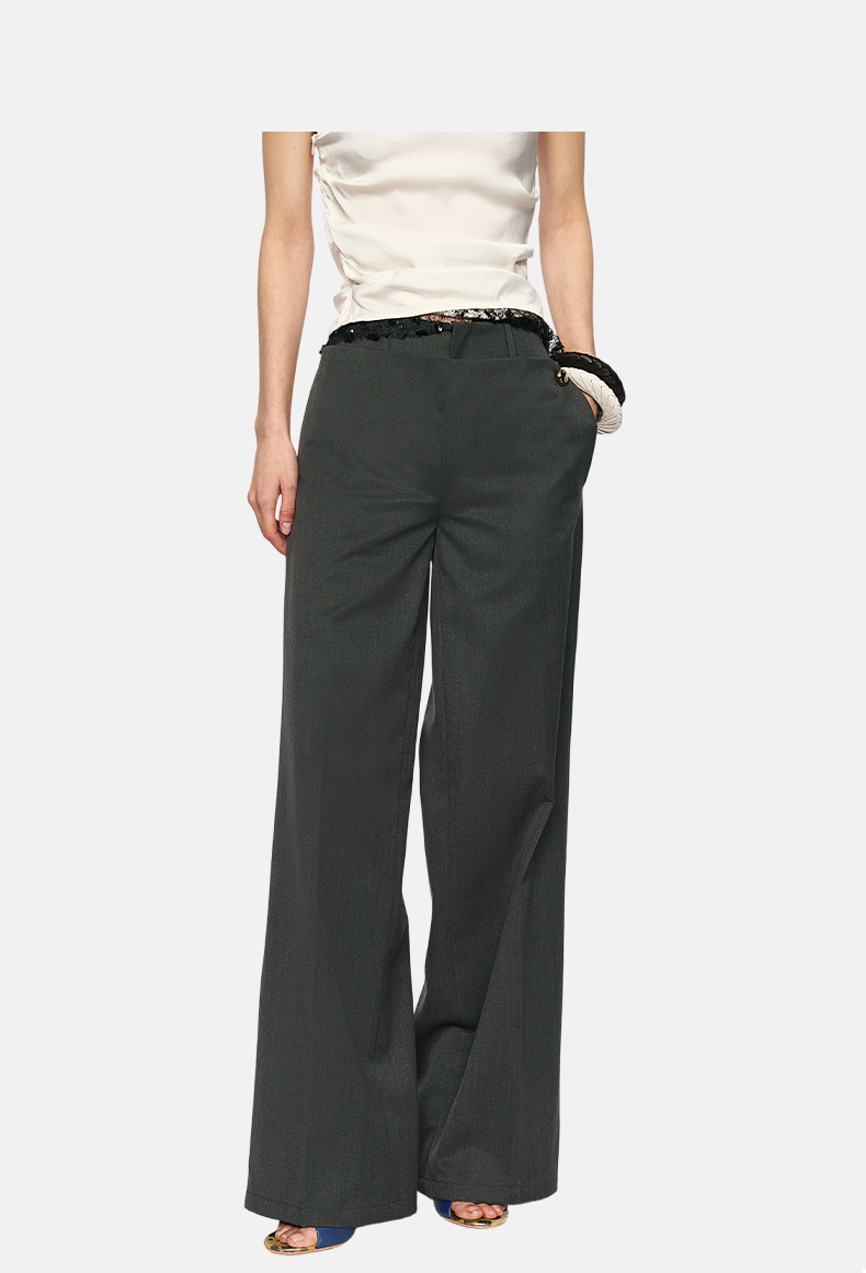 Minimalist Gray One-Seam Trousers with Gold Buttons